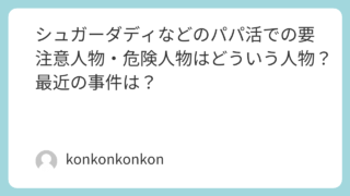 未分類 シュガーダディなどのパパ活での危険人物・要注意人物はどういう人物?最近の事件は? シュガーダディなどのパパ活での危険人物・要注意人物はどういう人物なのでしょうか。まず危険として考えられるのが事件性があるかないかということになるのかなと思います。ここで考えられる部分はヤリ逃げ、詐欺にあう、嘘をつかれる、監禁される予定ドタキ... 2024.09.09 未分類