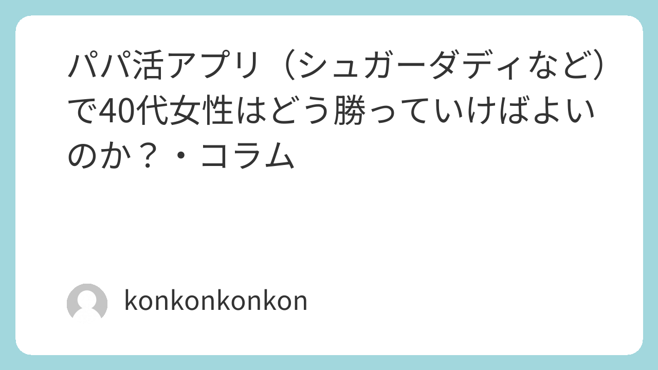 「パパ活アプリ40代女性」というキーワードがありましたので、書いておきます。僕のサイトは基本的に男性向けに書いていますので、男性目線で書いている男性のサイトっていうことになるのですがが、ただ、ついこないだ会ってきた女性が、おそらく40代の女性でちょっと感じることがありましたので、記事にしておきます。