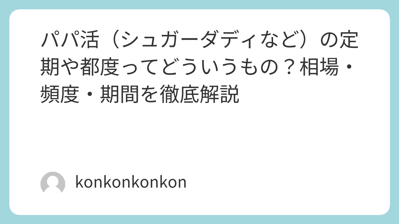 パパ活の定期や都度ってどういうもの?ということで記事を書いておきます。パパ活には都度契約・都度払い、定期契約・定期払いみたいな用語があって、定期というのは一般的には定期的に会って月〇〇円みたいな感じでお約束して会うっていうものとなります。