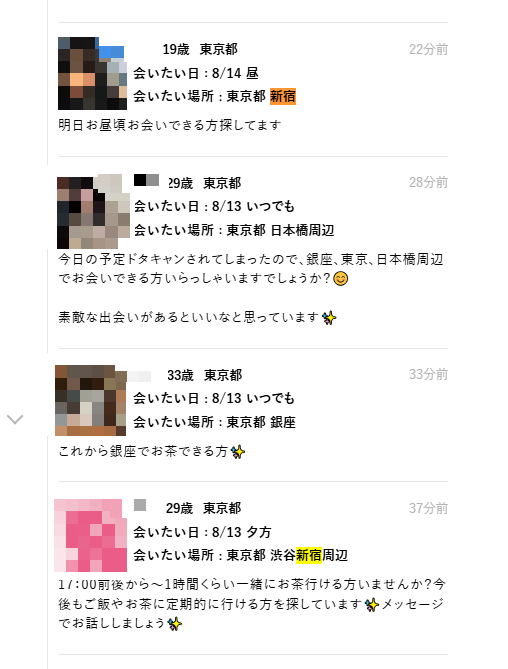 シュガーダディの方の掲示板をみていても、新宿の募集は多くて
