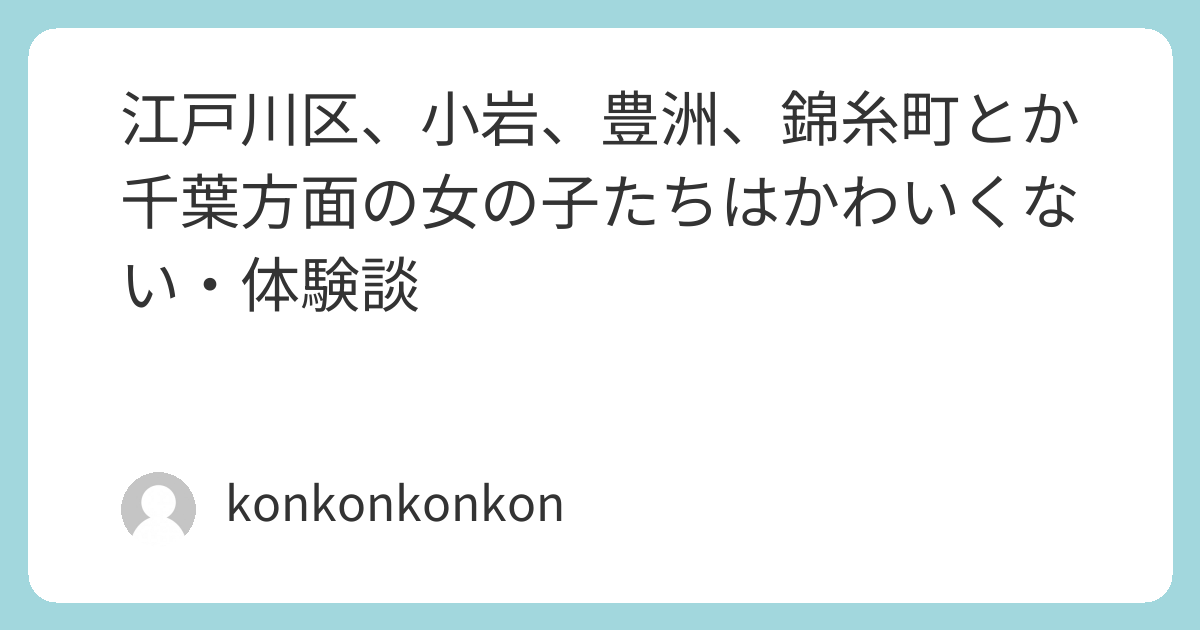 江戸川区、小岩、豊洲、錦糸町とか千葉方面の女の子たちはかわいくない・体験談